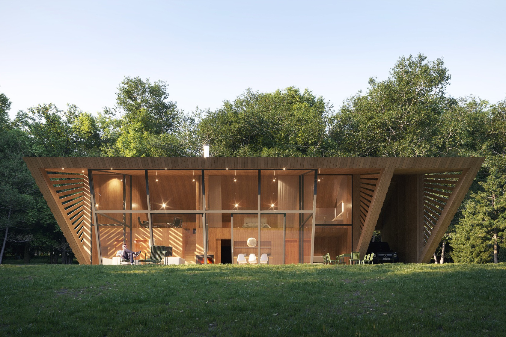 Jedná se o novostavbu pro rodinnou rekreaci. Objekt je jednopodlažní, toto prosklené podlaží se otevírá se směrem do okolní krajiny. Architektonické řešení klade důraz na jednoduchost, funkčnost a nadčasový výraz s ohledem na kontext místa. Fasády jsou navrženy s kombinací dřevěných profilů a skleněných ploch, které dodávají vizuální členění. Fasáda objektu bude předsazená a provětrávaná z dřevěných lamel Prostory jsou osvětleny přirozeným denním osvětlením.