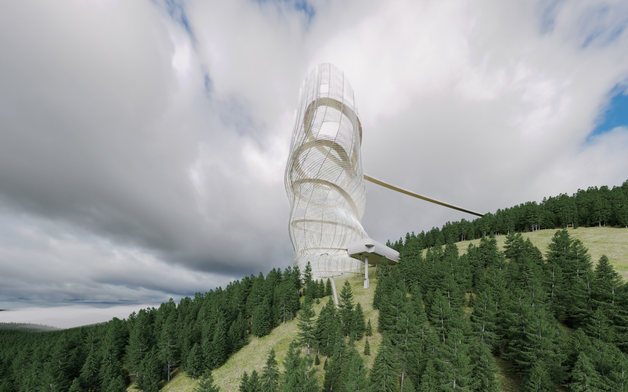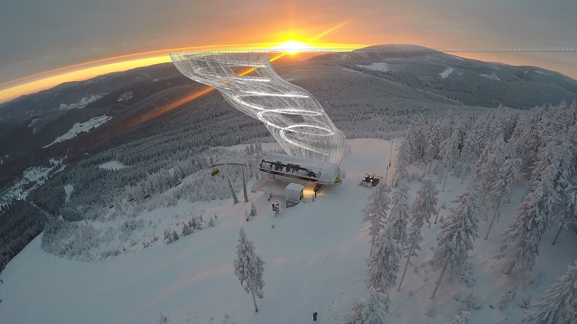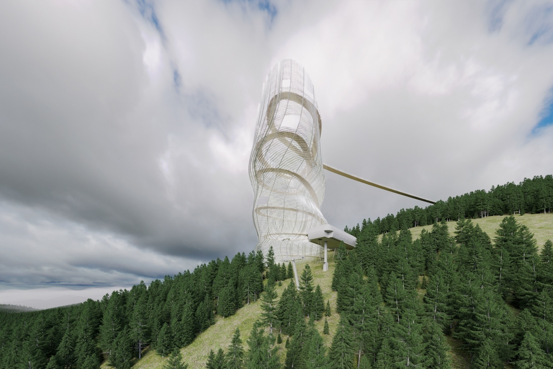 Věž Czarna Góra je další z řady zážitkových věží Skywalk (procházka v oblacích) horských vyhlídkových věží. Věž měří šedesát metrů. Jde o zahraniční projekt, který nesměl veřejně publikovat. Konstrukce je z žárově zinkované oceli. Objekt ‚Stezka v oblacích‘ je ideovou stavbou, která má umožnit návštěvníkům zažít intenzivní pocit pobytu v korunách stromů a zprostředkovat adrenalinový zážitek pobytu nad krajinou. Pro milovníky dobrodružství a zábavy jsou v objektu-konstrukci připraveny různé atrakce. Architektonicky byla řešena tak, aby co nejméně narušovala unikátní prostředí v místě stavby. Proto byly v maximální míře použity subtilní konstrukce a co nejtransparentnější zábradlí a kotvící prvky v nejnutnější míře. Přesto je stavba výrazná a podílí se na dotvoření krajiny abstraktně expresionistickou metodou podobně jako obrazy Cy Twomblyho, které jsou zdánlivý čmáráním v prostoru a na plátně,ve skutečnosti však do důsledku domýšlenou kompozicí stírající rozdíly mezi architekturou a uměním. Součástí této věže je restaurace a zážitková prodejna se suvenýry s pochozí zelenou střechou a lanovkou na nejvyšší přilehlý vrchol.