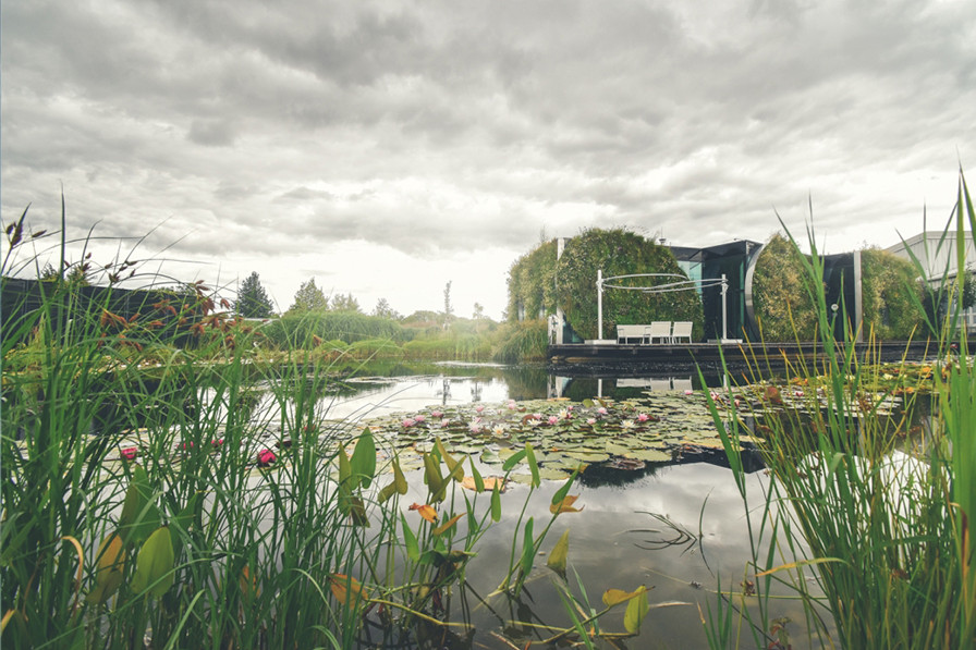 Právě budovaný objekt laboratoří LIKO-NOE na vodní ploše je dřevostavba, oplášteněná svislými zahradami. Montovaná konstrukce z masivních panelů, je v továrně připravována tak, aby mohla být smontovaná během jednoho měsíce. Jako přikladný objekt ke zkoumání ekologických přístupů v souvislosti s architekturou a pracovním prostředím. Objekt má kořenovou čističku odpadních vod, využívá solarní energii pro fotovoltaické panely i pro fototermální stěnu, která nabíjí podloží a zefektivňuje výkon tepelného čerpadla.
